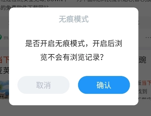 无痕模式开启:点击底部"菜单"→选择"无痕模式"→确认启用