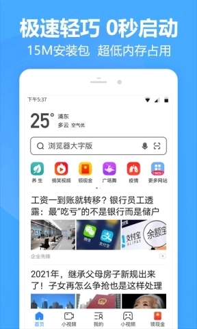极速搜索:简约搜索框设计,输入关键词即直达结果页,显著缩短网页加载时间,资讯、视频、小说等内容一触即达