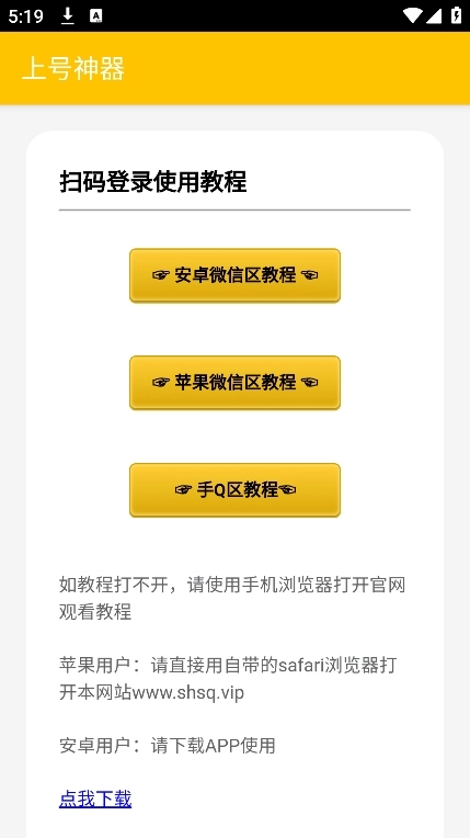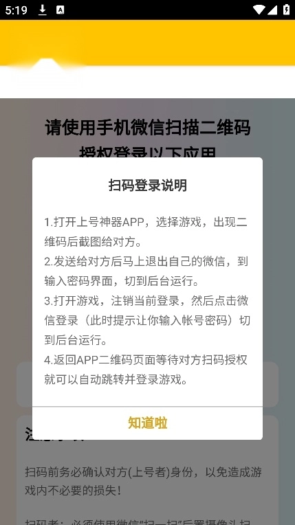 上号神器app是一款专注于手游账号管理的工具,支持微信扫码快速登录游戏。该软件简化了游戏账号的租赁和交易流程,用户可便捷地买卖账号或装备。通过二维码授权机制,避免了密码输入环节,降低了账号泄露风险。目前覆盖多款主流手游,但部分冷门游戏支持有限。软件采用基础加密技术保障交易安全,但用户仍需注意个人设备防护。首次使用可能遇到界面加载延迟,建议保持网络畅通。