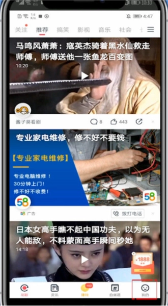 1. 手机中打开波波视频,在主页位置点击右下角“我的”