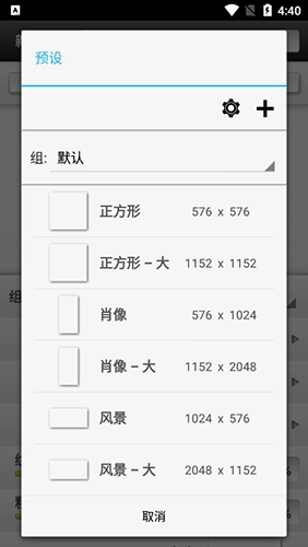 在对话框点击尺寸栏,输入自定义数值或选择预设。