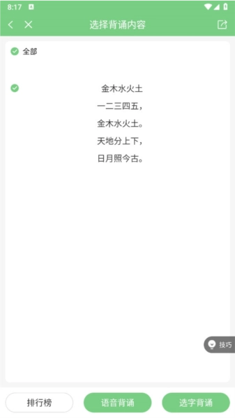 背诵技巧:保持环境安静,对照屏幕蓝色线框定位背诵内容。红色文字提示发音错误,可点击【重背】按钮修正。