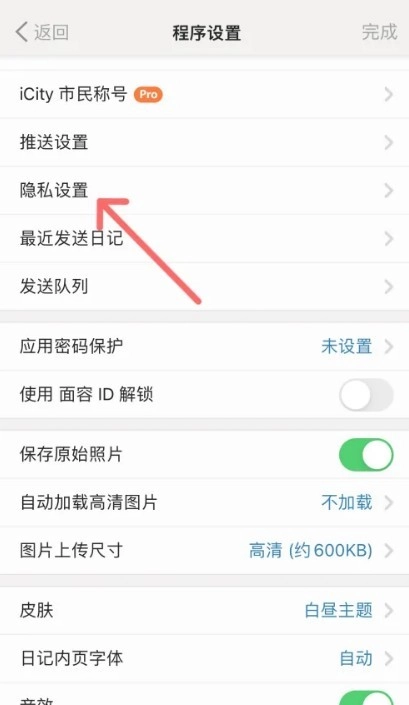 3. 滑动屏幕找到隐私设置菜单并进入功能页。