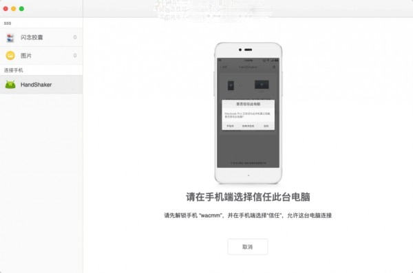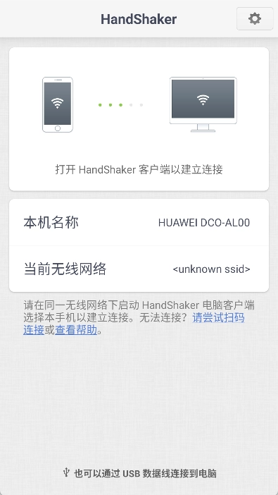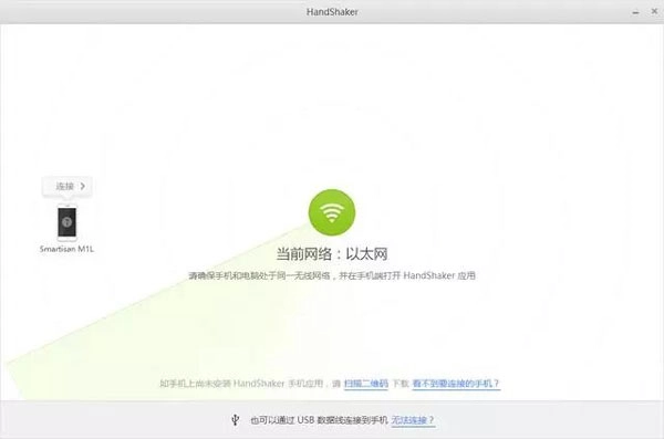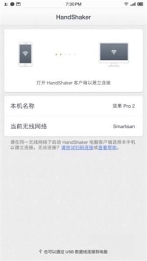 确保手机和电脑处于同一可用WiFi环境,启动手机端HandShaker应用。