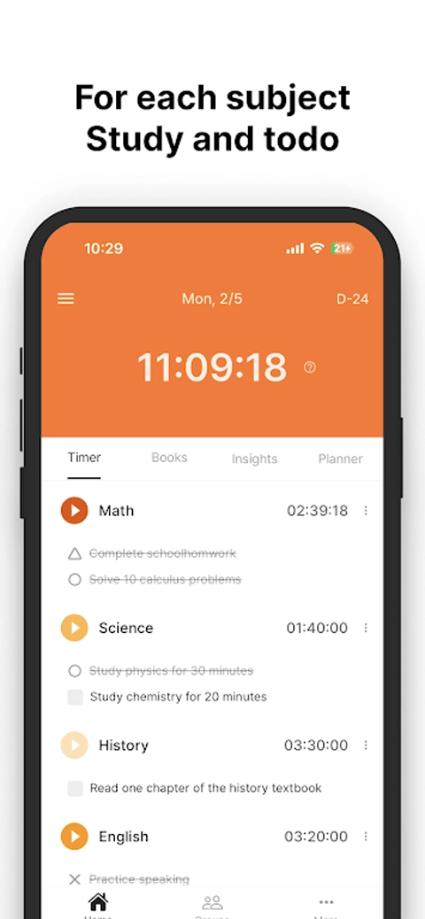 ypt是一款非常好用的学习软件,各类实用功能均免费开放,仅装饰性的物品需要付费购买。它的主界面采用正计时设计,你可以添加需要计时的科目,右上角还能设置目标倒计时剩余天数,同时支持列写日、周、月计划。