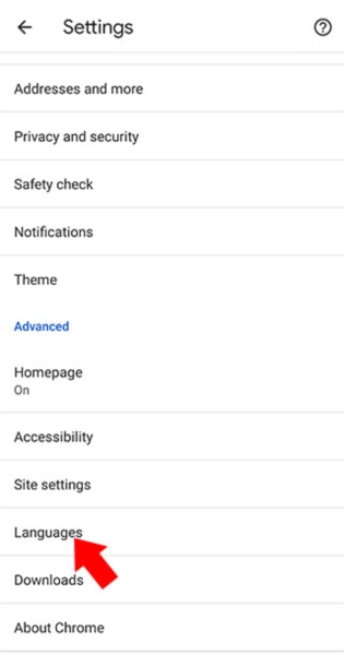 3. 滚动至Languages选项