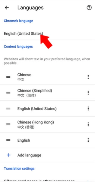 4. 点击Chrome's language菜单