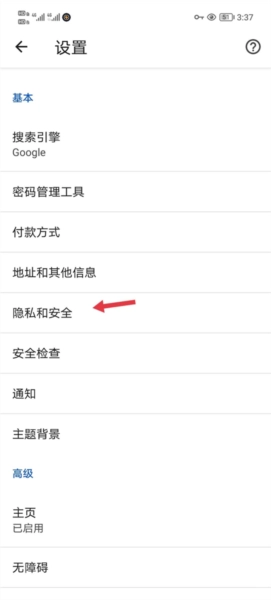 2. 进入隐私与安全分类