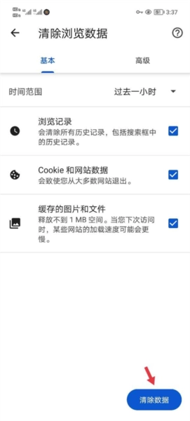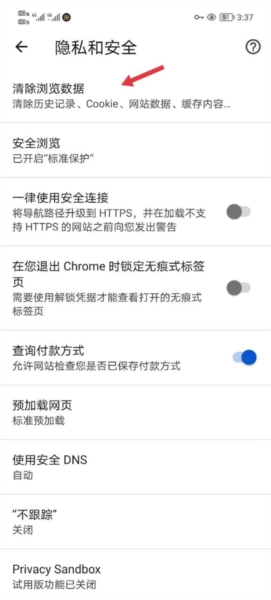 3. 点击清除浏览数据选项