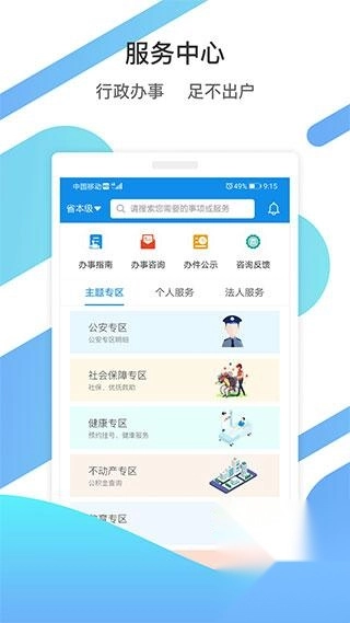 政务办理:对接省政务平台,可查询办事进度和提交材料