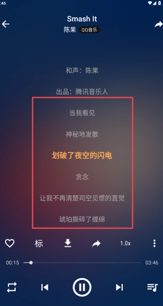播放界面双击封面呼出滚动歌词。