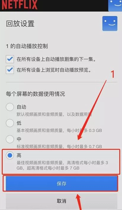 5. 勾选高清晰度,保存设置。
