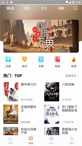 6. 海量书籍库,涵盖男频和女频专属内容,自由选择题材。