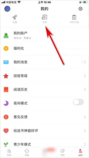 2. 在个人资料页面中,找到并选择【书单】功能。
