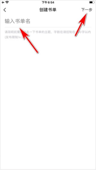 4. 输入书单名称,确认后点击右上角【下一步】完成创建。