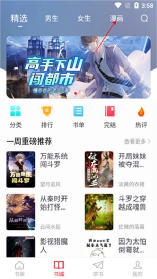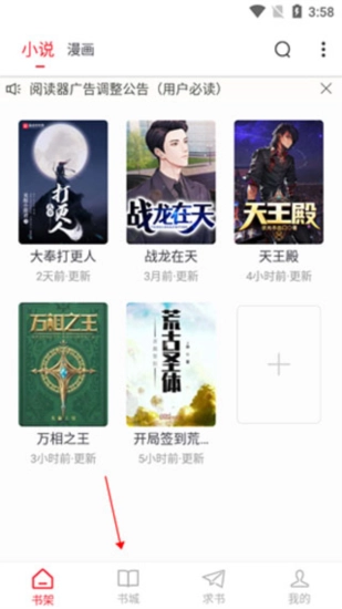 1. 启动追书大师APP,进入【书城】浏览所有资源。