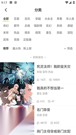 1. 资源库全面:提供上万本免费漫画,覆盖国漫、日漫、韩漫、美漫等,包含热血、科幻、爱情等题材,支持搜索关键词或作者名快速定位。
