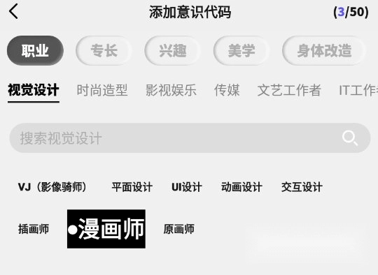 "我的页面"内修改意识代码标签,影响内容推荐方向。首次选择标签错误会导致初期推荐不精准。