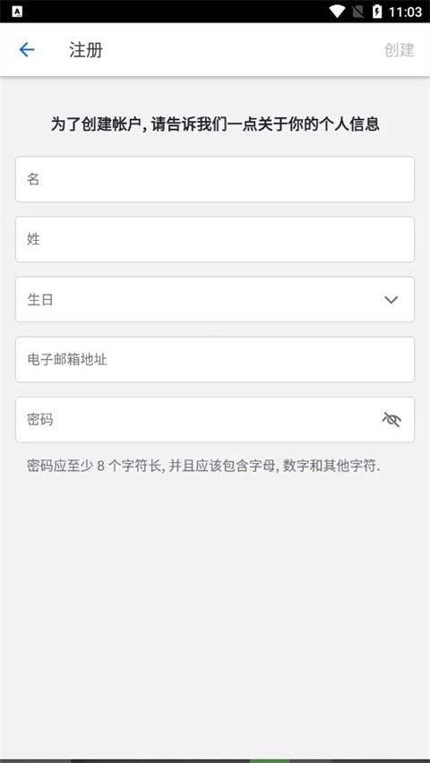 3、输入好相关的信息之后点击创建。