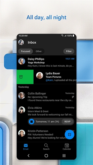 2、邮箱中和发送电子邮件后的数据加密,Outlook昼夜持续工作,帮助保护你的隐私并确保收件箱干净整洁。
