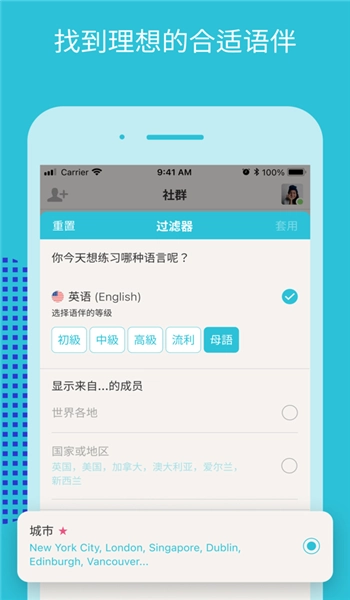 抛开紧张的行程和教科书学习。开发您自己的完美语言学习方式-无论是文字聊天、语音聊天还是面对面的语言交流。