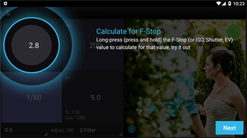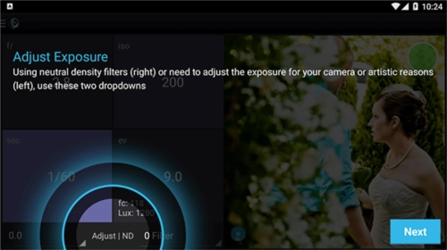5、使用相同的曝光选择器PhotoBuddy,你会感觉到在家里;拾取器允许您在测量场景后更改f-stop,快门或iso值,而无需更改曝光。