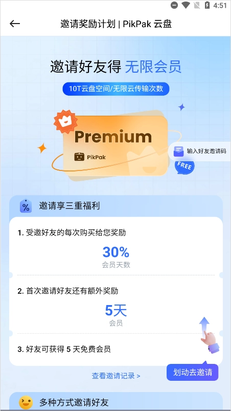 7、另外,如果你想要免费享受pikpak会员服务,还可邀请好友免费领取。