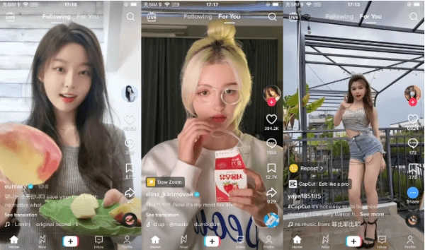 用户可以点赞、评论、转发,也可以“Duet”(双人视频)或“Stitch”(拼接片段)与其他视频互动。