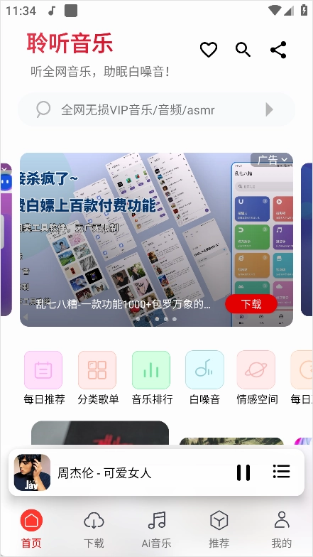 聆听音乐是一款集资源整合、便捷操作与用户体验于一体的免费音乐播放器APP。它不仅突破了各大主流音乐平台的限制,还为用户提供了更加自由、灵活的听歌选择。与传统音乐软件不同,聆听音乐致力于打造一个无门槛、无广告的绿色听歌环境,让用户可以专注于音乐本身,而不被繁琐的会员制度和广告干扰所打扰。对于那些希望在不付费的情况下依然能够畅听高品质音乐的用户来说,这款软件无疑是一个理想的选择。