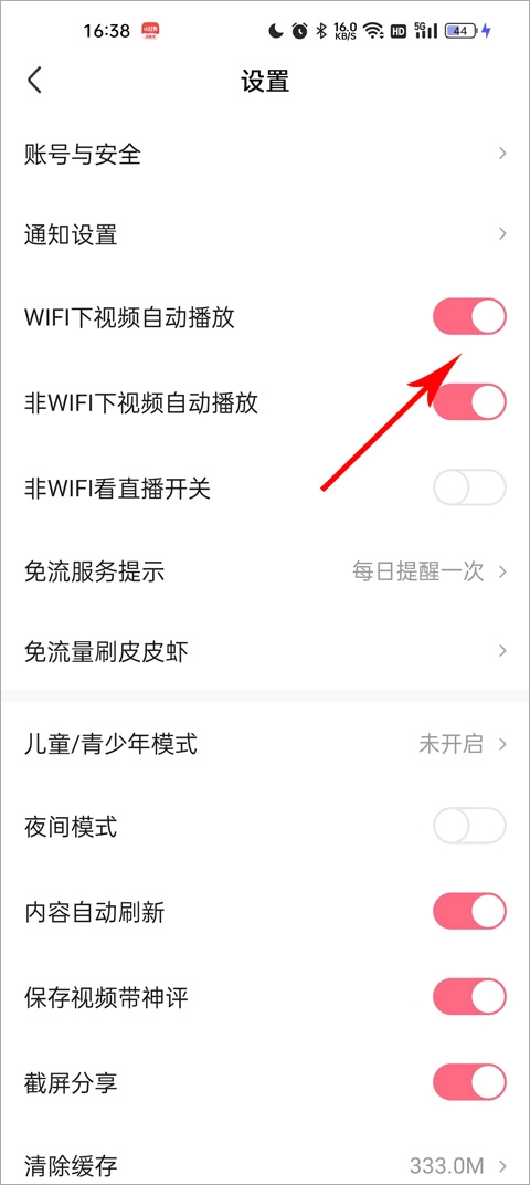 3、找到wifi下视频自动播放和非wifi下自动播放,全都开启就可以自动播放了,全部关闭就需要手动点击播放视频了。