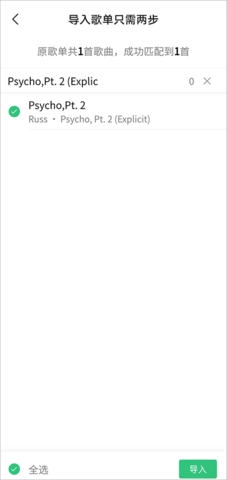 4、歌曲匹配成功后,点击右下角“导入”即可成功。