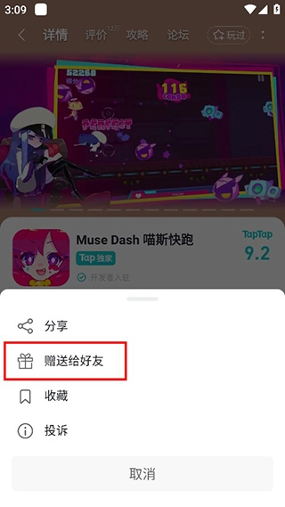 4、然后在弹出的页面当中,选择“赠送好友”;