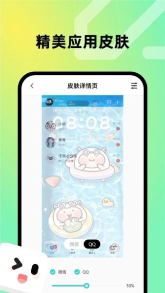 多款精美应用皮肤供用户们随时浏览和任意选用,拥有个性应用皮肤。