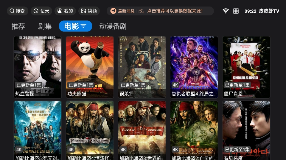 2、进入首页之后有很多影视分类,包括推荐版块、电视剧、电影以及动漫等。