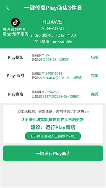 4、Play3件套云修复升级成功后,必须重启一次手机,才可激活谷歌play的所有功能
