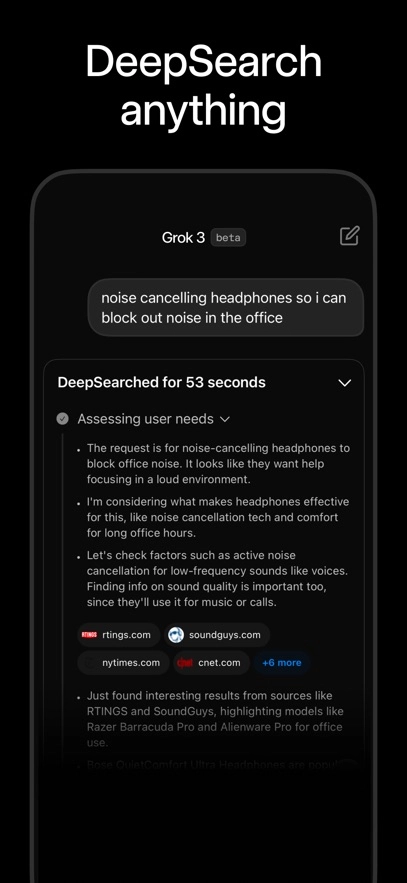 GROK 3中文版是一款多功能AI聊天机器人,这款软件现已完美接入推特平台,让你能借助Grok AI聊天机器人,轻松掌握推特上的每日动态。软件内不仅支持便捷的AI聊天、精准的数据分析,还有强大的深度搜索功能,全方位满足你的需求。Grok3是马斯克xAI团队倾力研发的最新大模型,目前免费向用户开放。利用它,你将体验到前所未有的强大推理与分析能力,开启智能信息处理的新篇章!