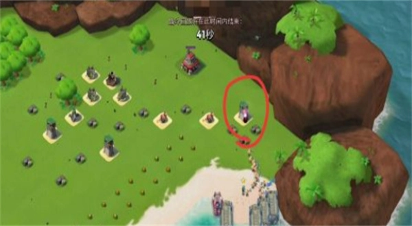 5、然后开始砸司令部,当它快落地时将引导扔至图示位置。