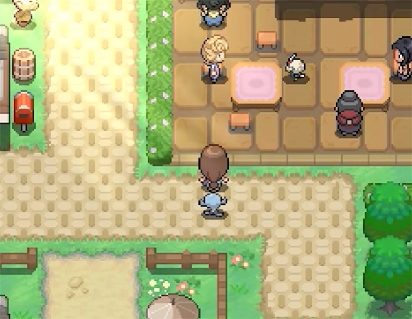 3、拿到宝可梦后出门右拐,来到这里与其对话进入第一次的战斗。