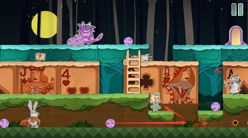 2、扑克兵会被球砸晕,趁着球的间隙快速移动到右上角的门里。