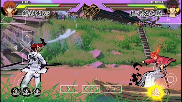 本次《浪客剑心》将以格斗游戏的形式与玩家见面:格斗,是最贴近原作的表现形式,最能还原原作味道。一场一场经典的对决,将在掌中重演。本作依托于格斗游戏形式之上的画面表现也十分具有特色,在攻击之际,画面上会出现描绘力道的墨线。这墨线会根据武器或者角色的不同而有多种演绎,可以说这是能让本作有更爽快演出的系统之一。