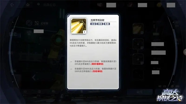 以自由高达为例,其主动技能【全炮门发射】在攻击带有“燃烧状态”的敌人时可获得额外增伤(需研发机体升星解锁)。若目标被该技能击坠(耐久值归零),自由高达可回复100能量。