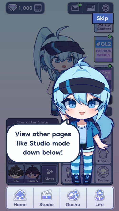 在工作室模式中创建自己的场景!为您的角色输入自定义文本,并从许多不同的姿势和背景中进行选择!