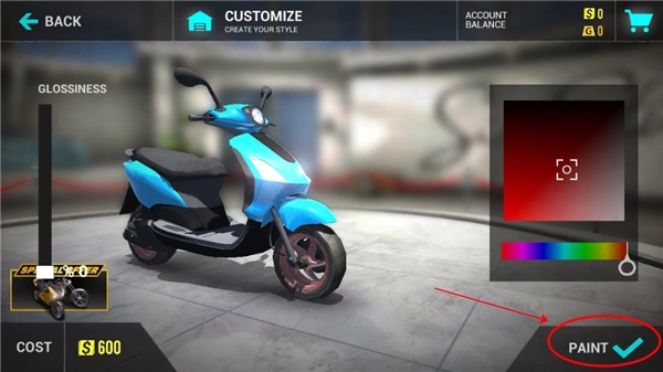 3、之后我们就可以对摩托进行改装,比如车轮、颜色、灯光等等;