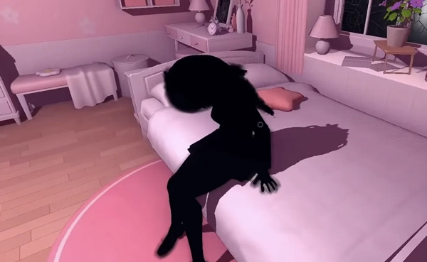一个扎着双马尾、笑容甜美的3D小人美少女开开心心地朝你打招呼,然后露出羞涩的笑容,问你可以帮她收拾房间吗?