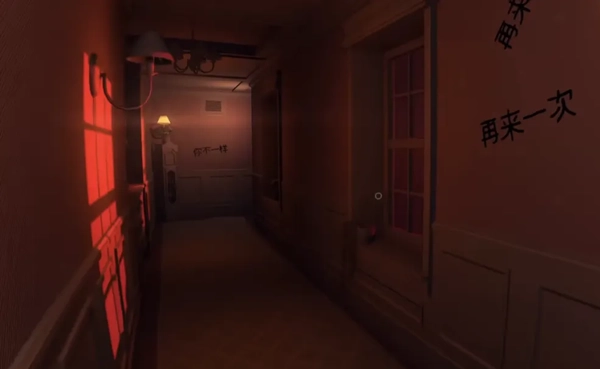 房间变成了黑色,镜子里有影子一闪而过,门口渗出血迹,还有0.5个米塔jumps care到处吓你。