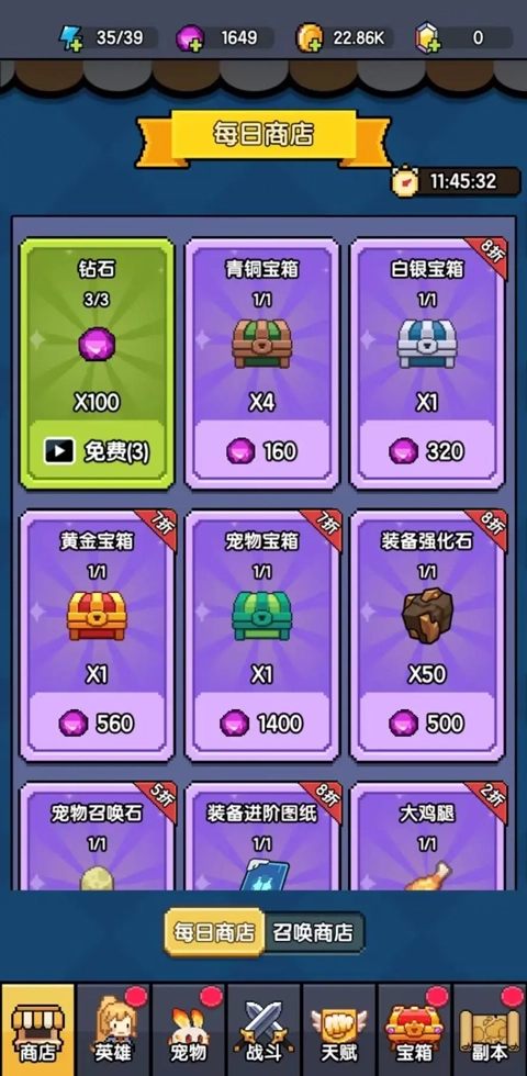 每通关一层都会增加高品宝箱的出货率,减少低品宝箱的出货率,每天有2次免费次数+2次广告次数,必须打满!