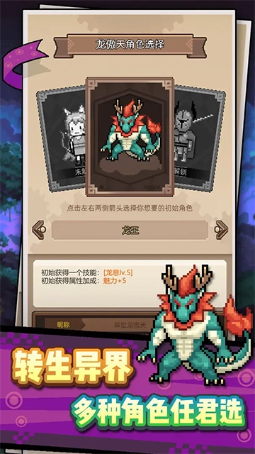 龙傲天模拟器这款巧妙融合了异世冒险、肉鸽玩法与角色养成元素的单机像素风手游中,玩家将开启一段充满未知与浪漫的旅程。你扮演的角色并非一开始就无所不能,而是一个怀揣着对真爱的执着,渴望改变自身命运的普通冒险者。游戏的世界观构建在一个充满奇幻色彩的异世大陆,古老的神祇、神秘的种族以及被诅咒的命运交织在一起,为冒险奠定了浓厚的基调。