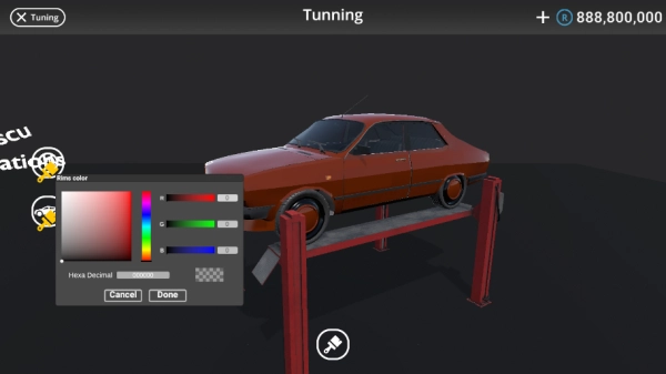 2、点击tunning可以进入车辆颜色的更换,可自行DIY自己的专属车辆