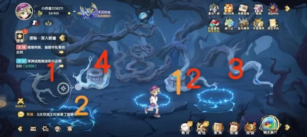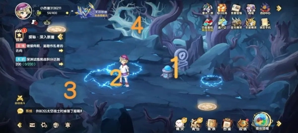 不夜断崖-点罐子出幽灵,点石头上的相同颜色的光,跟着幽灵走,总共四个,集齐解锁
