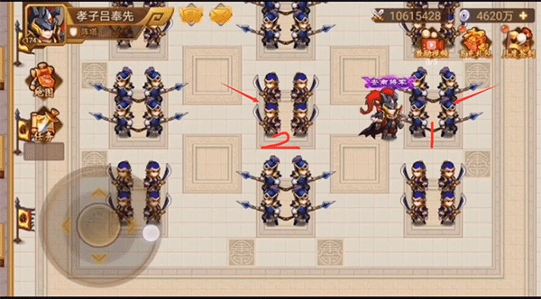 八、第八层,走位很简单,就按图所示进入阵眼走位即可。左边打败天龙,右边打败地蛟后才能见到守阵大将庞统,将其打败,可获得庞统专属和功勋值。